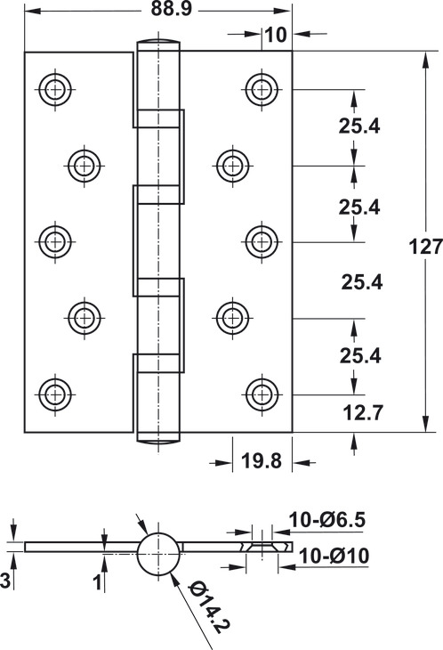 Bản lề lá 4 vòng bi Hafele, inox 304 màu inox bóng 127x89x3mm / 489.05.025
