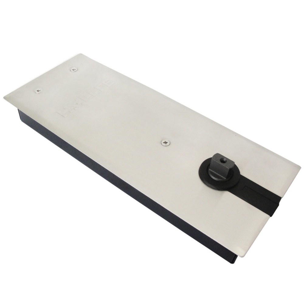 Tính thẩm mỹ cao: Toàn bộ thân bản lề được chôn âm dưới sàn, chỉ lộ ra phần nắp che bằng inox sáng bóng, tạo sự sang trọng và thông thoáng cho lối ra vào.