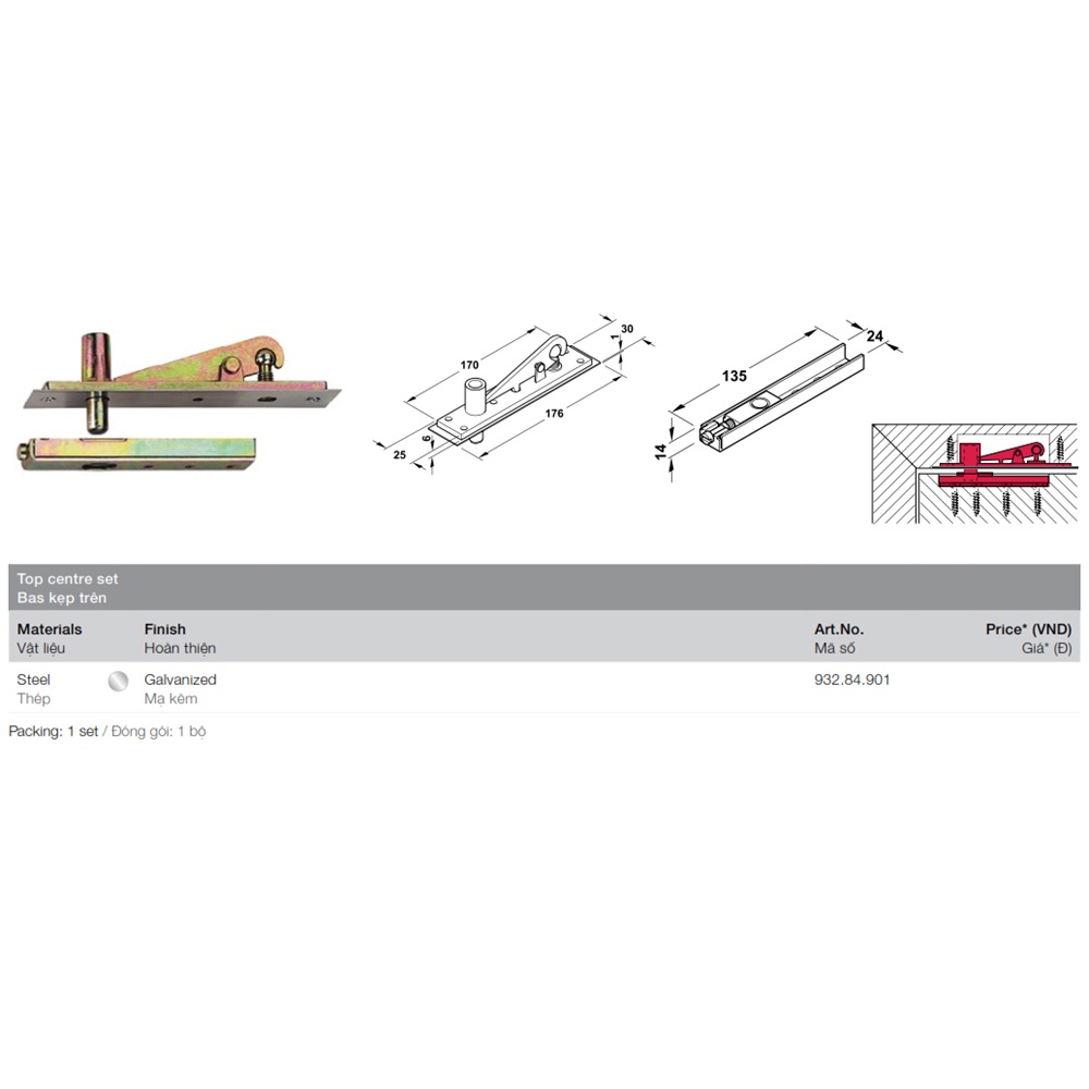 Bas kẹp trên bản lề sàn Hafele, Inox mạ kẽm Startec / 932.84.901