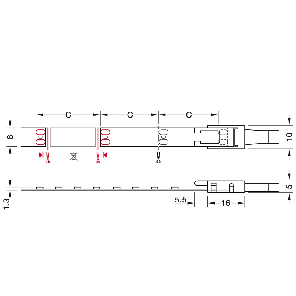Đèn LED dây Hafele, đơn sắc 5mét Loox5 LED 3048 24V 8mm 2-pin / 833.76.256
