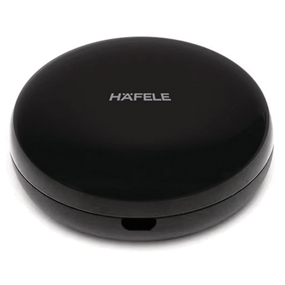 Sở hữu hình dáng tròn trịa hoàn hảo cùng lớp vỏ đen bóng gương (glossy) cao cấp, thiết bị dễ dàng “giấu mình” như một món đồ trang trí sang trọng trên kệ TV hay bàn làm việc. Logo Hafele được in sắc nét ở mặt trên như một lời khẳng định về chất lượng và đẳng cấp từ thương hiệu Đức.