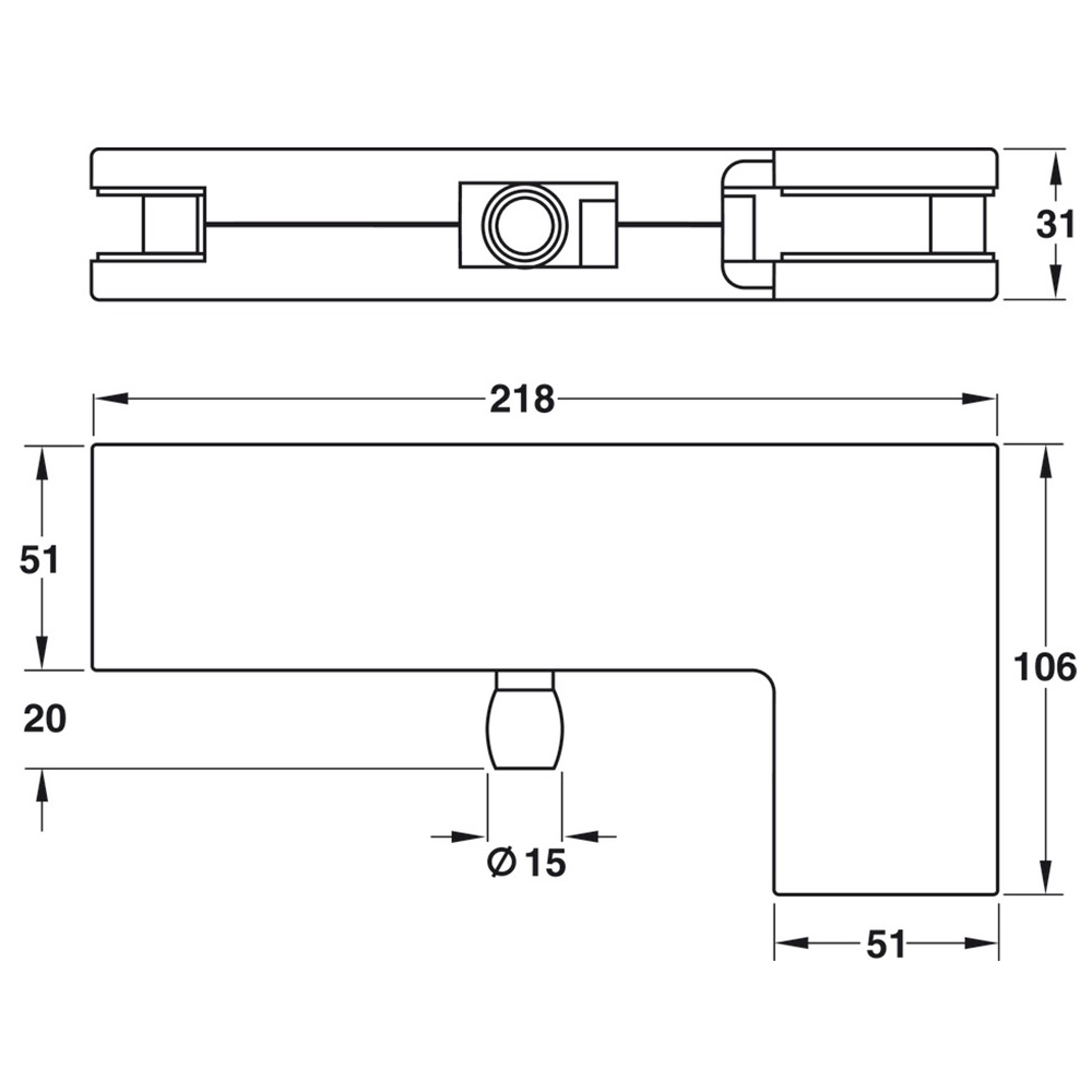 Kẹp kính trên Hafele, có chốt dành cho cửa mở 2 chiều F Startec / 981.00.663