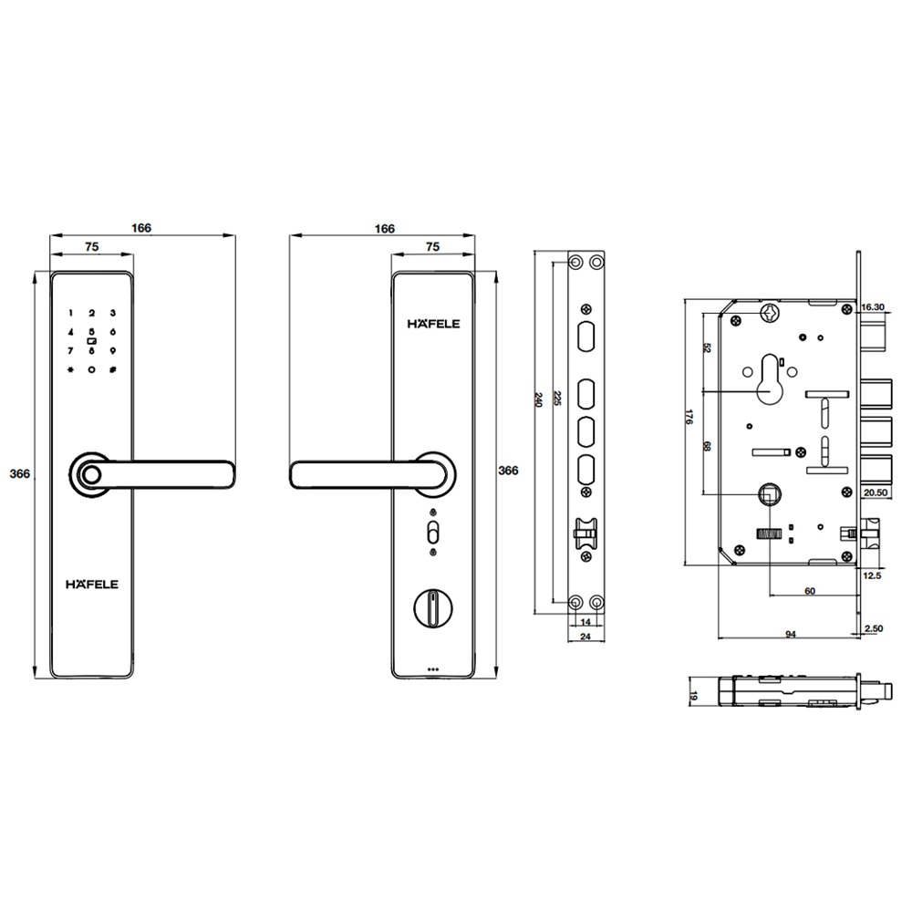 Độ dày cửa: Khóa Hafele thường yêu cầu đố cửa khá dày (thường từ 35mm – 38mm trở lên). Bạn nên nhờ kỹ thuật viên đo đạc kỹ trước khi xuống tiền nhé.