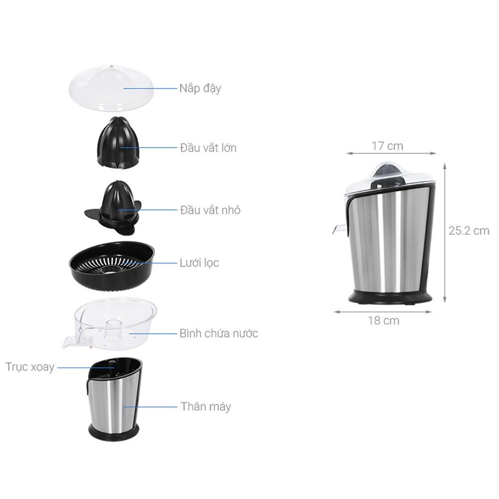 - Hai kích cỡ nắp ép: Phù hợp cho cam và chanh