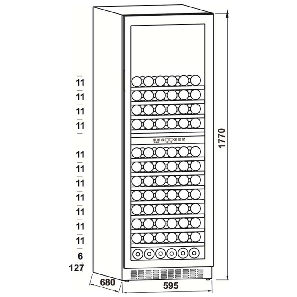 Dựa trên thiết kế tiêu chuẩn của model chuyên dụng, tủ rượu Hafele được tối ưu hóa kích thước để phù hợp với cả hình thức lắp đặt độc lập hoặc âm tủ: